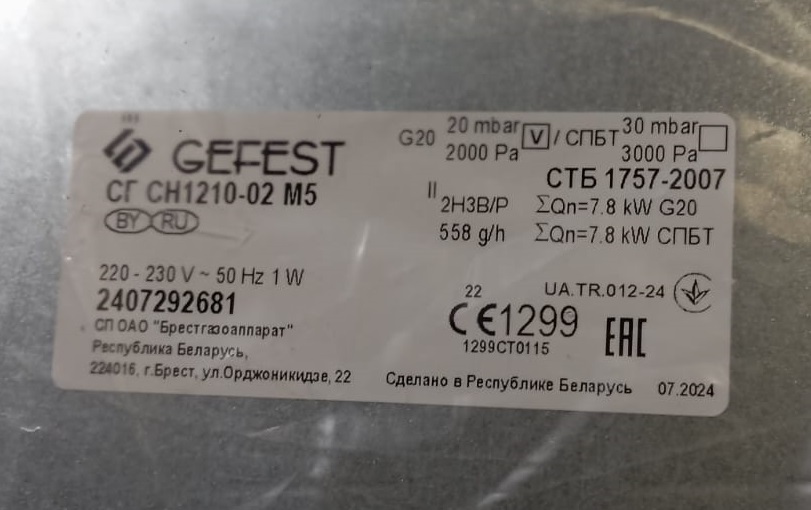 Газовая варочная панель GEFEST СГ СН 1210-02 М5 независимая