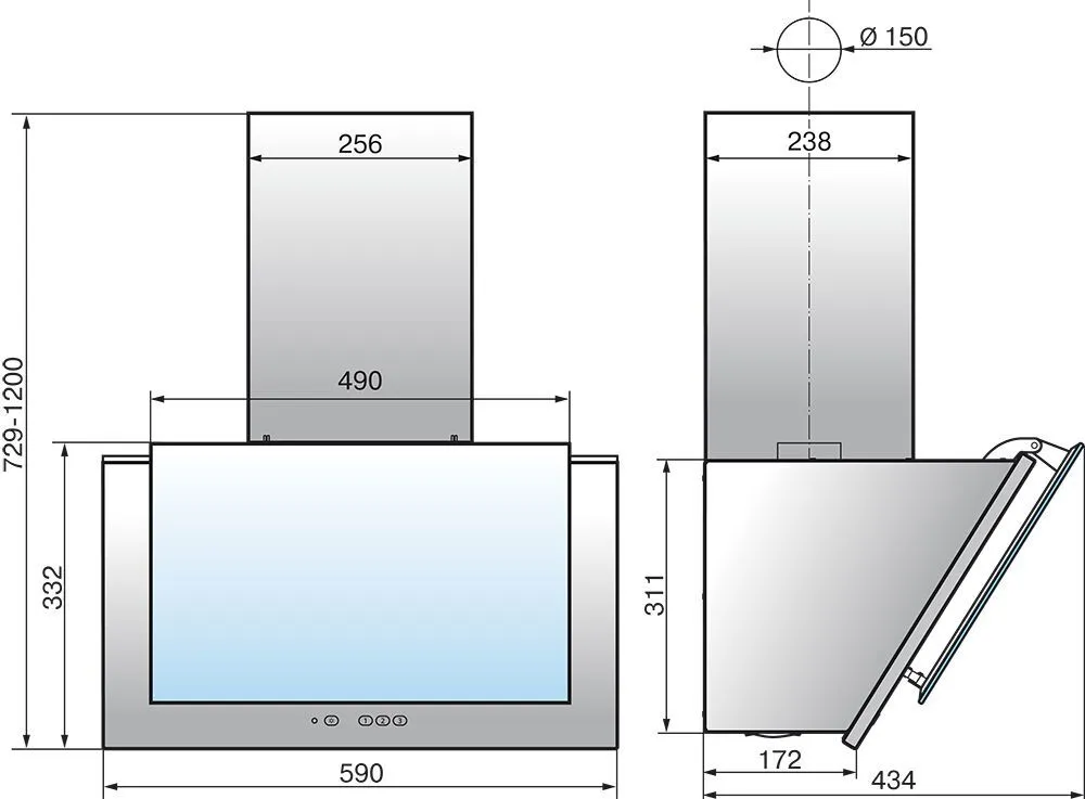 Ширина, требуемая для встраивания Elikor Рубин 60П-650-К3Д, составляет 59 см, а минимальная высота, на которой нужно установить вытяжку над рабочей поверхностью, равна 72.9 см.